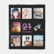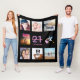 A gift for a woman's 21st birthday, celebrating her life with a collage of 8 of your photos. Templates for a name, age 21 and a date. Date of birth or the date of the anniversary. Pink and purple coloured letters. Black coloured background.