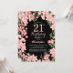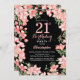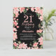 21st Birthday Pink Floral Flowers Black Background Invitation