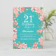 21st Birthday Pink Floral Flowers Teal Background Invitation