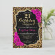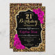 21st Birthday - Pink Roses Leopard Print Invitation