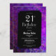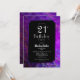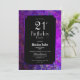 A black 21st birthday party invitation featuring a vibrant purple-painted frame.