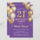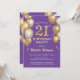 21st Birthday Purple and Gold Glitter Balloons Invitation
