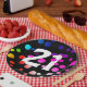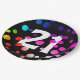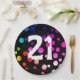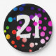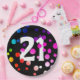 Neon rainbow dot pattern on black background for 21st birthday party.