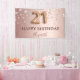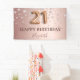 Elegant, classic, glamourous and girly for a 21st birthday party. Rose gold and blush pink, gradient background. Decorated with rose gold faux diamonds. Personalise and add a name. With the text: Happy Birthday. The name is written with a modern dark rose coloured hand lettered style script. Number 21 is written with a balloon style font.