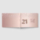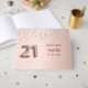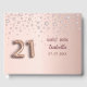 A guestbook for a girly and glamourous 21st birthday party. A faux rose gold background with pink faux diamonds. Personalise and add a name and date. The name is written in dark rose gold with a modern hand lettered style script. Number 21 is written with a balloon style font.