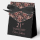 This elegant 21st Birthday Rose Gold Floral Thank You favor box with rose gold flowers on black, the birthday girl's name in a trendy script font, and tied with an beautiful black bow would be perfect for your event. It would be great for a candy station, on a thank you gift table, or at each place setting with a favor. Be sure you order enough for all your guests.