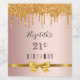 21st birthday rose gold glitter drip monogram wine label