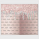 Elegant, classic, glamourous and feminine style party wrapping paper for a 21st birthday. A girly pink, rose gold faux metallic, foil looking background decorated with faux rose gold and silver glitter drips. Personalise and add her name and age 21, grey hand lettered script.
