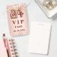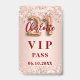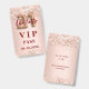 A modern, stylish and glamourous VIP badge for a 21st birthday party. A rose gold background decorated with confetti. With the text: VIP. Personalise and add name and party details.