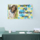 Celebrate your child's birthday with this 21st Birthday Tie Dye One Photo Banner. It features a blue, yellow, and white tie dye style pattern background. Personalise it with your child's name, age, and favourite photo.