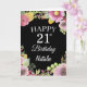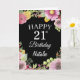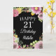 21st Birthday Watercolor Floral Flowers Black Card with personalised name and age. For further customisation, please click the "Customise it" button and use our design tool to modify this template.