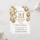 21st Birthday White and Gold Glitter Balloons Invitation