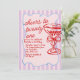 21st Red Pink Hand Drawn Champagne Photo Birthday Invitation