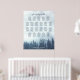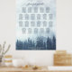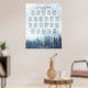 This elegant 22 table wedding seating chart features a rustic homey design with a woodland scene of a foggy or misty hillside covered in blue mountain pine trees. The title reads "please find your table" in lacy script calligraphy. There is space for the couple's names and wedding date. This chart has table assignments for 220 guests 10 people per table. Perfect for an outdoor or wilderness destination wedding.