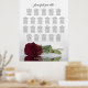 This elegant 22 table wedding seating chart features a beautiful photo of a single burgundy, maroon, or wine-red colored rose reflecting in water with waves and ripples. The title reads "please find your table" in lacy script calligraphy. There is space for the couples' names and wedding date. This chart has table assignments for 220 guests 10 people per table.