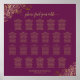This simple yet elegant wedding seating chart contains space for 220 names at 22 tables with the traditional 10 seats per table. The cassis purple, magenta, or berry and gold design features a gold script calligraphy title, and golden faux foil lacy frills in the corners. Wonderful way to help your guests find their tables while adding class, elegance, and style to your wedding reception.