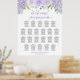 This beautiful 22 table wedding seating chart features a rustic boho chic floral design with hand painted watercolor roses, blossoms, and flowers in shades of lilac, lavender, and dusty purple, along with eucalyptus leaves and garden foliage. The elegant script calligraphy title reads "Welcome! please find your table" and there is space for the couple's names and wedding date at the bottom. With table assignments for 220 guests with 10 seats per table, this seating chart is a wonderful way to help you guests find their seats while adding beauty and style to your wedding reception.