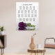 This elegant 22 table wedding seating chart features a beautiful photo of a single plum purple or eggplant coloured rose reflecting in water with waves and ripples. The title reads "please find your table" in lacy script calligraphy. There is space for the couples' names and wedding date. This chart has table assignments for 220 guests 10 people per table.