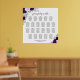 Add charm and sophistication to your wedding reception with this beautiful wedding seating chart, adorned with a rustic watercolor boho chic floral design. With seating assignments for up to 220 guests, each table accommodating 10 seats, this seating chart features a rustic blend of roses and flowers in shades of royal purple, lavender, and plum, gracefully intertwined with sprigs of eucalyptus leaves and garden greenery. The elegant script calligraphy title adds a touch of glamour, creating a sophisticated atmosphere for your special day, and there is room for the couple's names and wedding date at the bottom.
