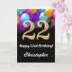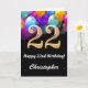22nd Birthday Black and Gold Colourful Balloons Birthday Card. For further customisation, please click the "Customise it" button and use our design tool to modify this template.