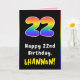 22nd Birthday: Colourful Rainbow # 22, Custom Name Card