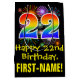 This exciting, fun, and colourful birthday-themed giftbag design features a large number "22" with a rainbow spectrum gradient style pattern, along with the message "Happy 22nd Birthday,", and an editable recipient name. It also features a colourful background pattern inspired by the appearance of bursting celebratory fireworks. A birthday themed gift bag like this might be used when giving a gift or present in celebration of somebody’s twenty second birthday. [~Z0000509]