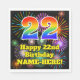 22nd Birthday: Fun Fireworks Pattern + Rainbow 22 Napkin