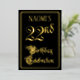 The front of this opulent, ornate, foil twenty-second birthday party/celebration invitation design features the message “22nd Birthday Celebration” in luxurious script-style text. It also features a custom name. The background of the front is coloured black by default (although it can be customised to a different colour). The back features personalised details about the event, such as the date, time, location, and any other relevant information. Fancy, elegant, customisable invitations like these might be used to invite guests to a birthday celebration/party being held in celebration of somebody’s twenty second birthday. [~Z0000589]
