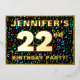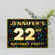 The front of this fun and eye-catching twenty-second birthday party/celebration foil invitation card design features a customisable name, a large number “22nd”, the message “BIRTHDAY PARTY!”, and a border. The background of the front has an upbeat, colourful pattern of music symbols and notes. The back features personalised details about the event, such as the date, time, venue, and any other useful information. Personalised invitations like these might be a fun way to invite guests to a birthday gathering/party being held to celebrate somebody’s 22nd birthday. These might be extra special if that person is a musician, a composer, a singer, a songwriter, or otherwise loves music. [~Z0000601]