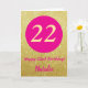 22nd Happy Birthday Hot Pink and Gold Glitter Card