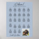 Modern elegant wedding seating chart with table numbers and names. Space allowing you can add or decrease the number of tables and names to suit your needs. There are many variations of this seating chart, different sizes, product type and all budgets covered. Thinner paper charts can be framed to create a sturdy wedding decoration and sign.
