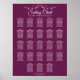 Make your wedding reception beautiful with this seating chart for 23 tables. It features a simple yet elegant design with white text on a cassis purple, magenta, plum, or berry colored background with a silver faux foil floral border. This chart shows table assignments so your guests will have an easy time finding the right table.