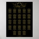 Make your wedding reception beautiful with this 23 table seating chart (230 guests). Designed as a part of our Gold & Black Elegant Wedding Suite, it features a simple yet elegant design with gold text on a black background with a gold faux foil floral border. This chart shows table assignments so your guests will have an easy time finding the right table.