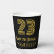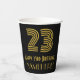 This vintage style and 1920s-1930s style inspired birthday themed paper cup design features a large art deco inspired style number “23”, in addition to the birthday greeting message “Happy 23rd Birthday,” and a custom name. The background is coloured black. 1920s-1930s style inspired birthday themed paper cups like this might be used at a birthday party in celebration of somebody’s twenty third birthday. [~Z0000546]