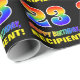 This cheerful, colourful, and fun birthday-themed wrapping paper design features a large number "23" and the message "HAPPY BIRTHDAY,", both coloured with a rainbow spectrum gradient inspired pattern, along with a bold yellow customisable recipient name. The background is coloured black. Fun birthday themed wrapping paper like this might be used when giving a gift or present in celebration of somebody’s 23rd birthday. [~Z0000475]