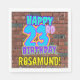 This fun birthday paper napkin design features the message “HAPPY 23RD BIRTHDAY,” having a vibrant, colourful, graffiti-inspired appearance, along with a personalised recipient name. The background features a brick wall inspired pattern. Paper napkins like this might be used at a party for somebody who is celebrating their twenty third birthday. [~Z0000534]