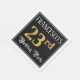 This fancy and elegant birthday-themed paper napkin design features a custom name and the message “23rd Birthday Party”. The large number “23rd” has an imitation/faux gold-inspired coloring pattern, the words “Birthday Party” are in opulent script-style text, and the background is colored black by default (although it can be customized). Ornate, luxurious paper napkins like this might be used at a birthday celebration being held in celebration of somebody’s twenty third birthday. [~Z0000565]