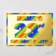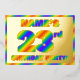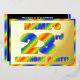 The front of this vibrant and exciting twenty-third birthday party foil invitation card features a personalised name, a large number “23rd”, the message “BIRTHDAY PARTY!”, and a border, all featuring a joyful, colourful, rainbow spectrum inspired gradient pattern. The back features personalised details about the event, such as the date, time, venue, and any other important information. Eye-Catching, upbeat, editable invitations like these might be used to invite guests to a birthday party being held to honour somebody’s 23rd birthday. [~Z0000593]