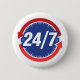 24/7 Hours Symbol w/ Clock Face & Time Arrows 6 Cm Round Badge