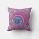 24-Hour ME Time pink purple blue self-care clock art pillow. Custom girly pretty swirl circles tornado clock. Pink purple orange blue lavender happy colours. Pretty in pink, violets are blue.