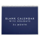 It's 24 months blank blue calendar with holidays (United States events and holidays) and customisable text on front page.