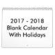 24 Months Blank Calendar 2017 - 2018 With Holidays