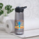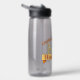 24 oz. Camel Back brand sturdy, durable, clear charcoal-colour plastic water bottle with the "Emotional Support Water Bottle" graphic prominently featured. Handwash preferred.