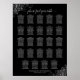 This beautiful wedding seating chart is simple yet elegant. It features a beautiful design of light gray text on a black background with lacy silver faux foil floral filigree in the corners. It includes table assignments for 240 guests with 10 guests per table.