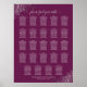 This beautiful wedding seating chart is simple yet elegant. It features a beautiful design of light gray text on a magenta, plum purple, berry, or cassis colored background with lacy silver faux foil floral filigree in the corners. It includes table assignments for 240 guests with 10 guests per table.
