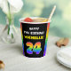 This cheerful and joyful birthday themed paper cup design features a big number “24“ having a multicolored rainbow spectrum inspired gradient pattern, along with the message “HAPPY 24th BIRTHDAY,”, and a personalised recipient name. Birthday themed paper cups like this might be used at a party celebrating somebody’s twenty fourth birthday. [~Z0000639]