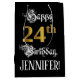 24th Birthday ~ Fancy Script; Faux Gold Look; Name Medium Gift Bag