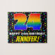 This eye-catching and colourful birthday jigsaw puzzle design features a large number “24” having a multicolored rainbow spectrum inspired gradient pattern. It also features the message “HAPPY 24th BIRTHDAY,”, and a personalised recipient name. The background features a cheerful, multicolored star field pattern. A bold, personalised birthday puzzle like this might be a fun way to deliver a birthday greeting message to somebody who is celebrating their twenty-fourth birthday. [~Z0000607]