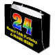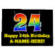 This colourful and fun birthday themed gift bag design features a large number "24" with a rainbow spectrum gradient inspired pattern, along with the message "Happy 24th Birthday,", and an editable name. The background is coloured black. A vibrant gift bag like this might be used when giving a gift or present in honour of somebody’s 24th birthday. [~Z0000521]