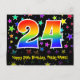 24th Birthday: Fun Stars Pattern, Rainbow 24, Name Postcard